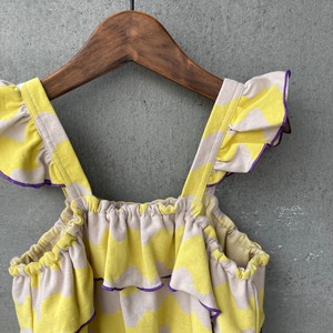 ・肩紐と胸元にあしらった、たっぷりフレアがガーリーデザインなフリルキャミソール。 ・ウエストに施したゴムで、丸みのあるシルエットを表現。 ・別品番の同じ柄のトップスやボトムと、 Link CoordinateやSet upが楽しめる。