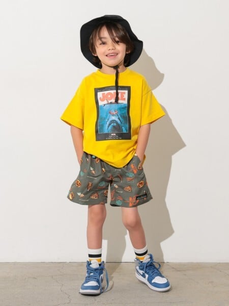 ・レトロなドーナツモチーフと、ヴィンテージムービーポスター風のグラフィックがコーデの主役に。