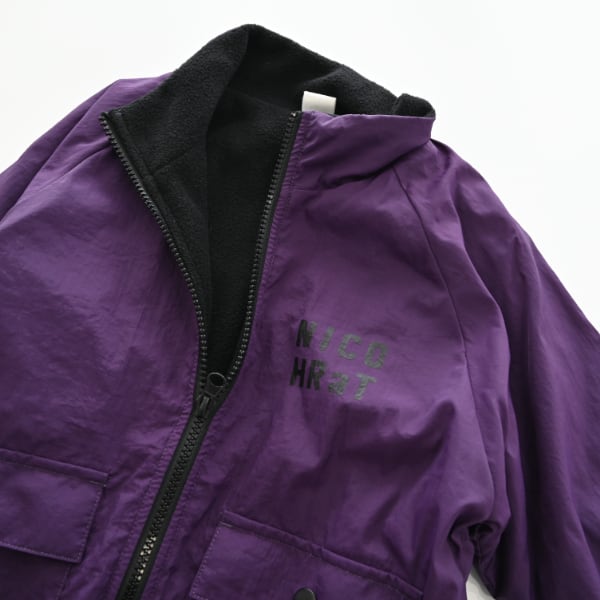 アウターは表地がタフタ素材のジャケット裏地にフリース付きで暖かくフロントにはロゴプリントが入ってワンポイントになり、どんなコーディネートにも合わせやすいです。